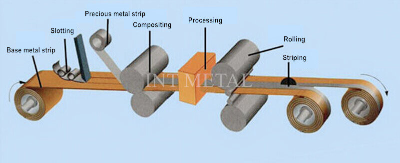 బేస్ మెటల్ స్ట్రిప్ స్లాటింగ్- విలువైన మెటల్తో హాట్ కంపోజిటింగ్- ప్రెసిషన్ రోలింగ్- స్ట్రిప్పింగ్